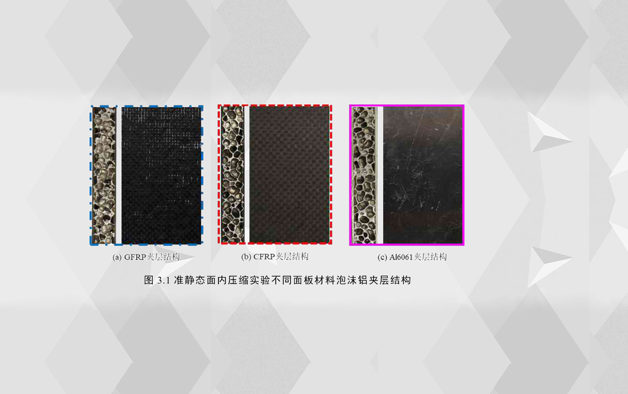 泡沫鋁夾層結(jié)構(gòu)在汽車應(yīng)用中所承載的另一種典型工況為面內(nèi)壓縮,例如泡沫鋁填充引擎蓋、側(cè)門等,例如泡沫鋁填充的前縱梁,當(dāng)汽車發(fā)生正面碰撞交通事故時(shí),當(dāng)沖擊速度較大時(shí),引擎蓋、側(cè)門會(huì)發(fā)生較大的擠壓面內(nèi)變形,而夾層結(jié)構(gòu)在面內(nèi)壓縮工況下的失效機(jī)理和吸能特性也是相當(dāng)復(fù)雜的,為了推動(dòng)夾層結(jié)構(gòu)在汽車上的應(yīng)用,對泡沫鋁夾層結(jié)構(gòu)在面內(nèi)壓縮工況下全面系統(tǒng)的研究是很有必要的。本章主要通過實(shí)驗(yàn)的方法,揭示了不同配置的泡沫鋁夾層結(jié)構(gòu)在準(zhǔn)靜態(tài)面內(nèi)壓縮工況下的結(jié)構(gòu)響應(yīng)機(jī)理、失效模式以及耐撞性能,得出何種配置的泡沫鋁夾層結(jié)構(gòu)的耐撞性能更優(yōu),泡沫鋁夾層結(jié)構(gòu)的配置參數(shù)主要包括面板材料、面板厚度、芯層高度和芯層密度。